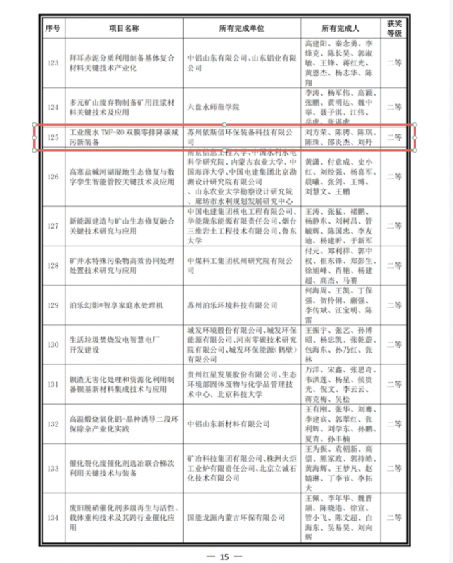 依斯倍工业废水零排降碳减污新装备荣获2025年度中华环保联合会科学技术奖