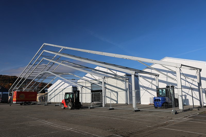 农贸市场是当地居民买菜做饭的重要场所,而苏州昆山某农贸市场经过多年的使用,市场路面、消防设施、排水系统、电器线路等基础设施陈旧,已不能满足现有的农贸市场标准,被政府列入2019年江苏农贸市场升级改造项目,并于2019年3月份已开工建造,但是在改造期间菜贩们无法营业,给周边居民带来了很多不便,政府为了保证经济社会平稳健康发展的民生底线,决定在长达183天的改造周期里菜贩们建造一个临时室内摊位,保证菜贩们正常营业。政府负责人通过不断地考察和对比,在众多的篷房行业中最终选择了华烨篷房厂家。