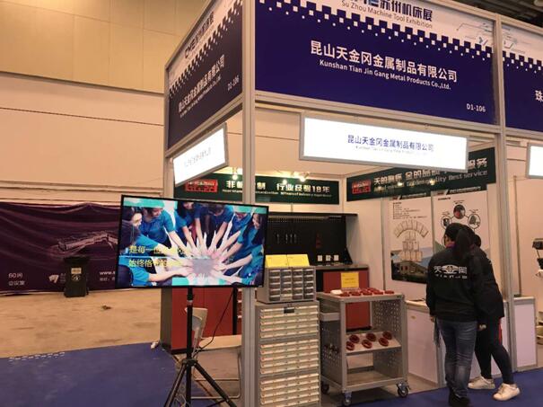 在展会现场,昆山天金冈周总周艳玲女士还向CME机床展参展的参观者们介绍了此次参展的核心工位器具对各机床厂所能带来的超值价值,同时也对公司现状及未来发展方向作了简单的介绍,她希望昆山天金冈的产品能帮助到更多的机床厂家。