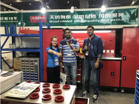 展会第一天,8.2L129展亮位相了几款让老外叹为观止的天金冈工具柜。此产品首次亮相,引起巨大轰动,众多国内外客户在此展位前流连忘返。