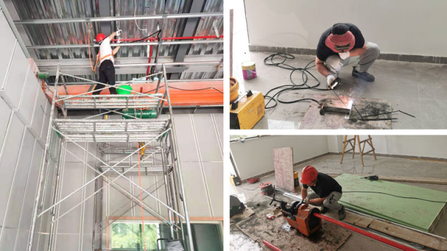据了解,汽车发动机实验室因为功能测试要求,房间高度在4到6米,这就要求管道、喷头和火灾探测器的施工都需要高空作业,操作有一定的难点。因与钢瓶间有一定的距离,98%的管道管件几乎都是现场切割、套丝、焊接,并确保管道横平竖直,整齐排列,后期由于客户要求,对其中一部分进行了管道修改。汽车发动机实验室气体灭火系统施工完成后,念海消防项目经理带领上海交大的消防负责人进行了气体灭火系统的调试验收,并对相关工作人员进行了灭火系统的使用培训与点检培训,确保发生火灾后能熟练操作,获得了客户的高度认可。