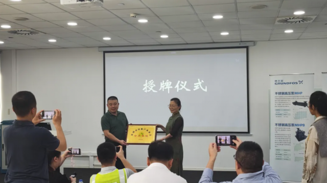最后,苏环协领导为格兰富颁发会员牌匾,标志着这家全球水泵知名企业正式融入苏州环保产业生态。依斯倍作为苏环协重要成员,见证了这一行业联动的关键节点,更期待未来与格兰富在“废水处理+节能设备”领域展开深度协同,共同为企业提供更高效的绿色生产服务方案。