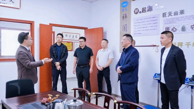 考察团在孙海清陪同下,实地参观了企业生产车间、研发中心、产品展示区及企业文化馆,详细了解企业生产流程、技术创新、产品特性和文化建设情况。孙海清向考察团系统汇报了企业发展历程、核心产品、技术研发成果及未来规划,表示企业自成立以来始终专注称重领域,通过持续的技术创新和完善的服务体系,在市场竞争中稳步发展。同时,企业积极履行社会责任,在支持家乡建设、助学助农等方面开展实践。