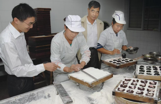 第三次见到桂香村大方糕是九十年代转业后当记者时的相遇。在制作现场,看吧:蒸腾着热乎气,这小小方糕,在蒸笼里被时间与烟火气共同煨养着,如一块块温润的玉,将苏州的烟火气与精致含蓄全都凝练其中了。几位老师傅,埋首案前忙碌着,揉、搓、裹、蒸,动作间透出岁月磨砺的熟稔。面团在他们掌中翻飞,如同有生命般被赋予形状;豆沙馅被灵巧地包裹进去,每每不多不少,恰如其分。这手艺乃是经年累月磨砺所得,指掌间传递的力道分寸,早已化为深埋于血脉中的直觉。他们低头专注工作,身影与热气相融,竟如一幅凝固了时光的旧画。他们不言不语,却分明以手艺为语言,在向世人娓娓讲述着关于这座城最温润的故事。