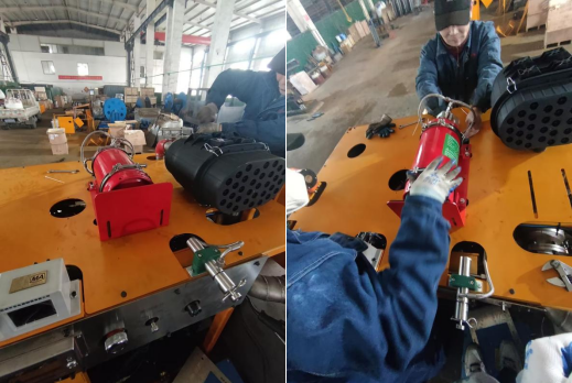根据山东天浩科技为若干矿用柴油式履带运输车加装自动灭火装置的需求,念海消防对其介绍了煤矿车辆自动灭火系统,并最终推荐了一款机械式无电无压自动灭火装置。该装置为水基混合型灭火装置,针对矿用车、矿用电动轮汽车、无轨胶轮车、特种车辆等重型汽车的火灾特性研发,整套装置不带电,采用纯物理机械式自动探测与启动,无需外接电源,探测管路在正常巡检状态下无压力。装置有效喷射时间不低于35秒,采用141℃与182℃温度探测器,使用耐低温可达零下40℃的水基灭火药剂,能够将灭火剂直接输送到发动机舱着火点,实现灭火效果,并已在煤矿车辆行业获得应用验证。